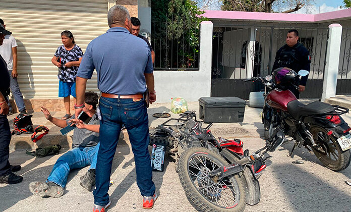 Por otro lado, en el cruce de la avenida Médico y la calle Dalia, en la colonia Doracely, el conductor de una camioneta SUV marca Honda, color verde, modelo reciente, no tuvo precaución al tratar de incorporarse a la vía de preferencia y chocó contra una motocicleta tipo cross, conducida por un joven identificado como Yosmar, vecino de la colonia Vista Hermosa.
