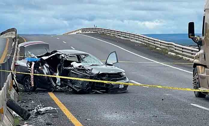 Una mujer muerta y tres personas más lesionadas, es el saldo de un desigual choque entre un tráiler y un automóvil, ocurrido en el puente de la carretera a Zacatecas y el entronque a Ahualulco, en donde el carro terminó en pérdida total.