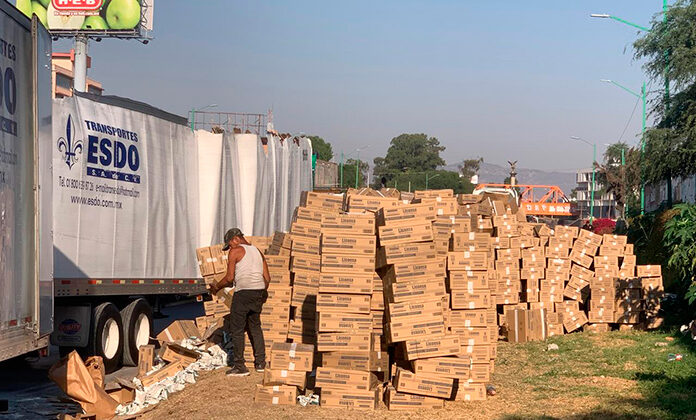 Esto provocó que se detuviera la circulación en esa vía para descargar las cajas del alimento en polvo.