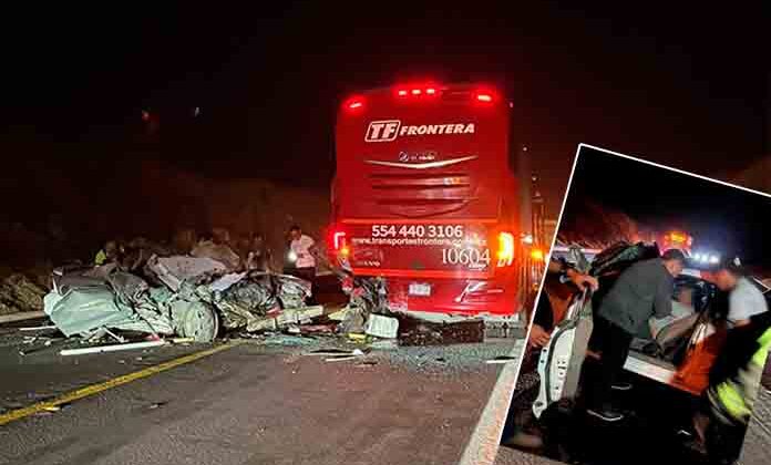 Fue a la altura del kilómetro 23, en donde el carro se estampó de frente contra la parte posterior de un autobús de pasajeros de la línea Transportes Frontera, que se encontraba detenido en el lugar y que también se dirigía hacia Rioverde.
