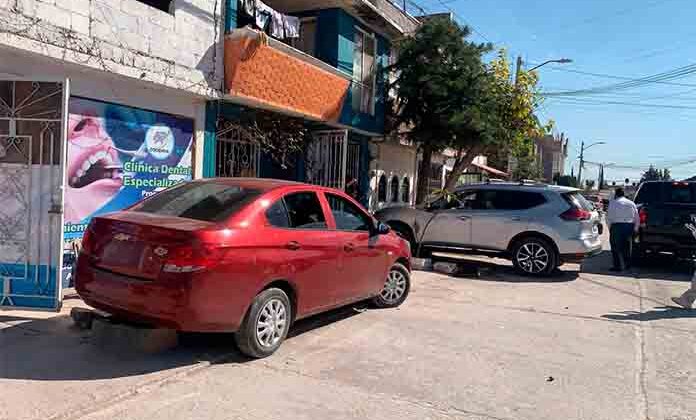 Sin embargo, al estar herido apenas avanzó media cuadra y entonces chocó el auto contra una camioneta Nissan Xtrail de color gris, así como contra dos jardineras.