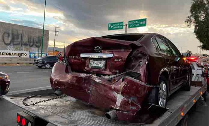 Fue en la cima del puente de la Avenida de los Pinos, en donde el conductor no guardó su distancia de seguridad y de esta forma chocó de frente contra la parte posterior de un automóvil Nissan Altima de color guinda, que en esos momentos se desplazaba por ahí y cuyo conductor disminuía su velocidad debido a la afluencia vehicular.