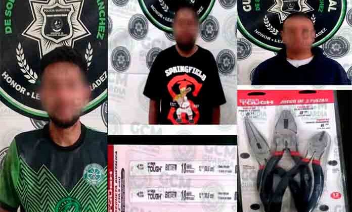 A los tres se les informó que serían detenidos por presunto robo a comercio e intento de robo y daños, respectivamente, y posteriormente se pusieron a disposición de la Fiscalía General del Estado para seguir con el debido proceso.