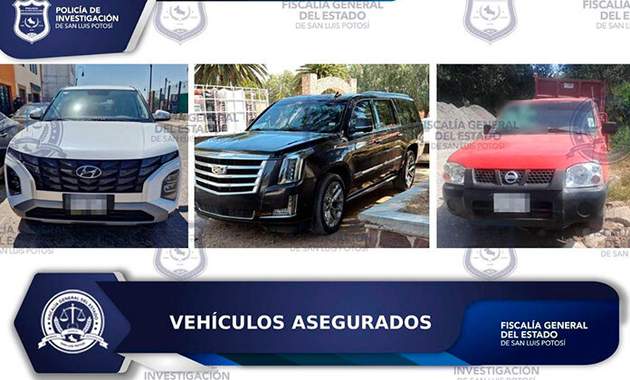 Asimismo, en el barrio de Tlaxcala, en Moctezuma, fue asegurada una camioneta tipo SUV, marca Cadillac, línea Escalade, color negro, la cual, al ser consultada en las bases de datos correspondientes, arrojó reporte de robo en el estado de Texas, Estados Unidos de América.