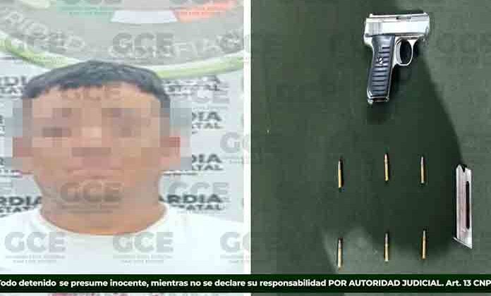 Un sujeto que cargaba una pistola con cartuchos útiles en la capital potosina, fue detenido por elementos de la Guardia Civil Estatal que lo detectaron en recorridos de vigilancia, además cuenta con amplios antecedentes penales.