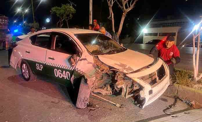 Un taxi quedó inservible tras ser chocado por una camioneta a la que se le atravesó en la avenida Soledad de la colonia San Felipe, por fortuna no hubo lesionados a pesar de lo aparatoso del percance.