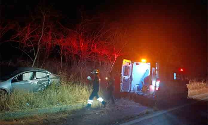 La noche del sábado, los Bomberos Voluntarios de Tamuín auxiliaron al conductor de un vehículo Nissan Sentra gris, con placas de una organización campesina, quien sufrió un accidente vial en el tramo Tamuín–Ciudad Valles, a la altura del rancho El Relajo.
