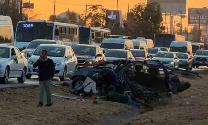 Un lesionado y fuerte daños materiales, fue el saldo registrado durante un aparatoso accidente en la carretera México, en donde una de las unidades participantes acabó volcada sobre el desnivel de la cuneta divisoria de carriles.