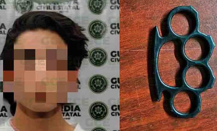 La detención ocurrió en la colonia Los Reyes, efectivos de la GCE detuvieron a Ángel “N” de 18 años de edad, luego de que se le asegurara una manopla de metal conocida como “bóxer”.