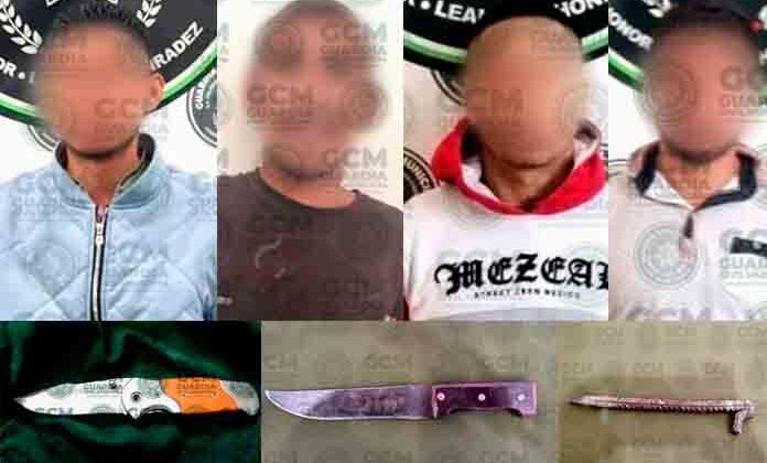 Cuatro hombres fueron detenidos por policías de la Guardia Civil de Soledad, por presuntas lesiones y portación de arma prohibida, las acciones se llevaron a cabo en distintas colonias para mantener la paz social.