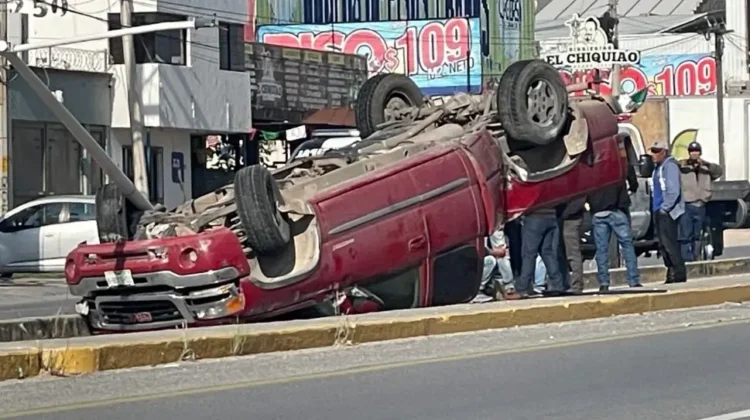 Tras el impacto, la unidad terminó volcada, con las llantas hacia arriba. Paramédicos acudieron al sitio y valoraron al conductor, quien no requirió traslado a un hospital.