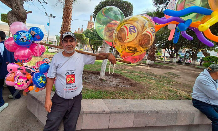 Aunque su actividad generalmente la realiza en los tianguis, ayer aprovechó el desfile de la Revolución Mexicana para ofrecer sus globos, teniendo buena respuesta por parte de los asistentes, principalmente madres de familia que compraban para sus niños.