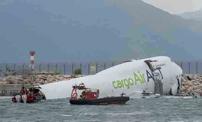 Hong Kong.- Un avión de carga salió de la pista en Hong Kong y cayó al mar al aterrizar, causando la muerte de dos personas, informaron las autoridades.