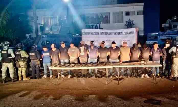 Mientras en Navolato, también en Sinaloa, tras recibir una denuncia ciudadana, donde reportaban la presencia de personas armadas en un hotel de la localidad, los “agentes del Gabinete de Seguridad, en coordinación con la Secretaría de Seguridad Pública y Fiscalía General del estado, detuvieron a 14 personas, tres de ellas extranjeras, se aseguraron 13 armas largas y una ametralladora”, precisó la SSPC.