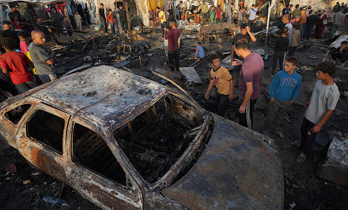 Horas antes el lunes, al menos cuatro personas murieron por un ataque aéreo israelí contra el patio de un hospital en la Franja de Gaza. El bombardeo provocó enormes llamas en un abarrotado campamento de personas desplazadas por la guerra y causó quemaduras graves a más de dos docenas de ellas.