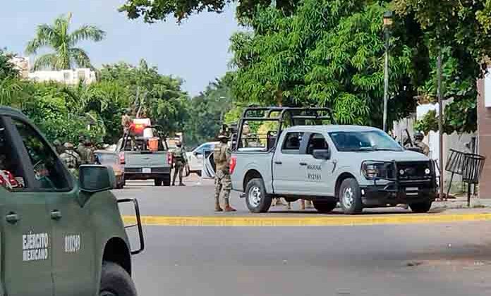 Culiacán, Sin.- En el fraccionamiento San Luis, muy cerca del aeropuerto internacional de Culiacán, hombres armados que se encontraban en dos vehículos atacaron a elementos navales los cuales, al responder la agresión, lograron abatir a uno de ellos y uno más quedó herido, el resto huyeron a pie entre las calles.