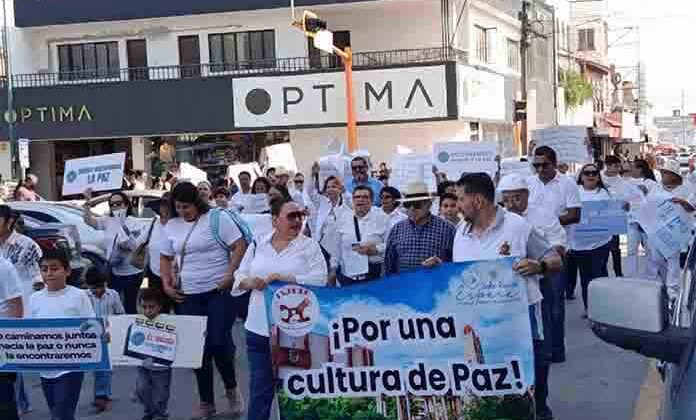 Ciudad Victoria, Tamps.- Con ropa blanca, cartulinas y mantas, decenas de personas participaron en la Marcha por la Paz en el centro de Ciudad Victoria, donde pidieron frenar la violencia y mejores condiciones de seguridad.