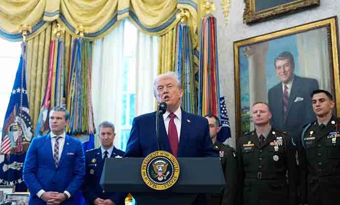 Trump anunció la firma de la orden en un evento celebrado para condecorar a militares por su labor defendiendo la frontera con México. El mandatario declaró que “no cabe duda de que los adversarios de Estados Unidos están traficando fentanilo a Estados Unidos, en parte porque quieren matar a estadounidenses”.