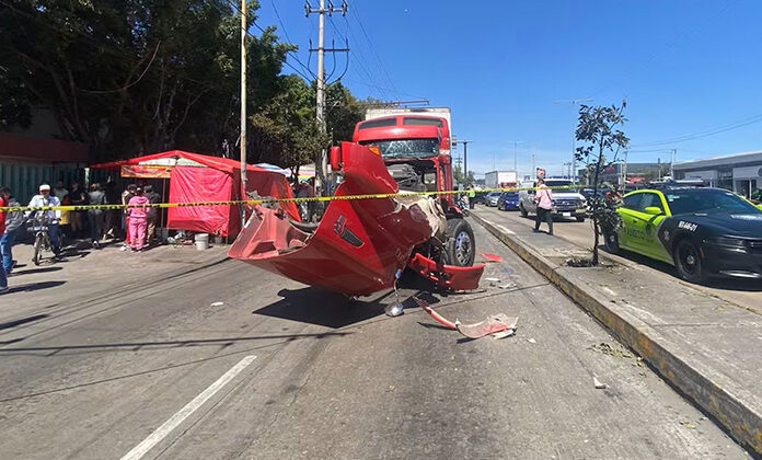 Metros adelante, en el cruce de Calzada Zaragoza, el tráiler de color blanco impacto al otro vehículo de color rojo provocando daños en la defensa, por lo que el pleito escaló hasta el punto que el chofer de la unidad roja sacó un martillo y comenzó a golpear el parabrisas del otro implicado, mismo que aceleró y lo arrolló.