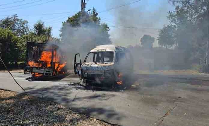 Las unidades fueron utilizadas por la célula delictiva, para atravesarlas y prenderles fuego, con la finalidad de bloquear las vías de comunicación e impedir el avance de las autoridades.