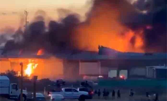 Dos horas después, el incendio se salió de control y se propagó al almacén de las instalaciones.