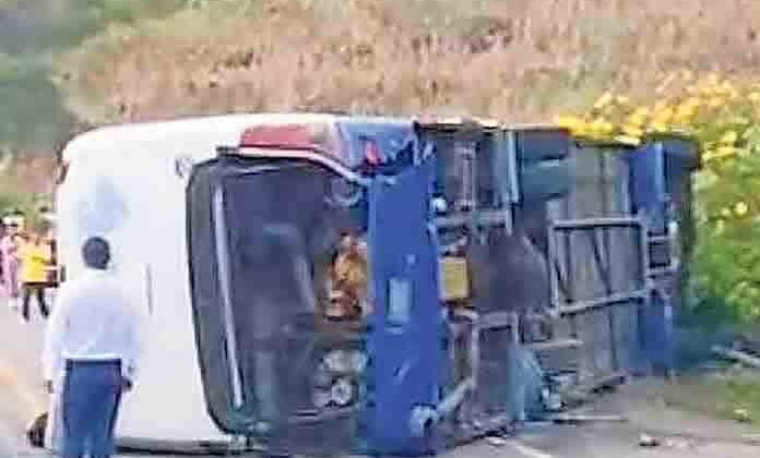 Chiapa de Corzo, Chiapas.- Al menos dos muertos y 22 heridos fue el saldo que dejó una volcadura de un autobús que trasladaba a un grupo de personas indígenas mayas tzotzil y tzeltal, en la autopista de San Cristóbal de las Casas, en Chiapas, informó Protección Civil del estado.