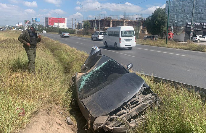 Abandonan carro al volcar en rúa a México