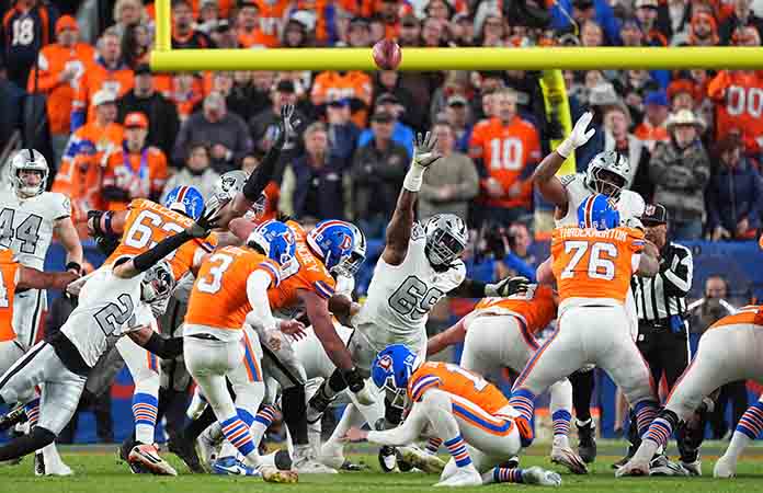 Denver se mantiene en la cima del Oeste tras vencer al colista EQUIPO de Las Vegas[EFE] Redacción Deportes.- Los Denver Broncos derrotaron este jueves por 10-7 a Las Vegas Raiders en cerrado partido que abrió la semana l0 de la temporada de la NFL.Denver se mantiene en la cima de la división Oeste de la Conferencia Americana (AFC) con ocho juegos ganados y dos perdidos, … [Leer más...] acerca de Raquítico triunfo de Broncos