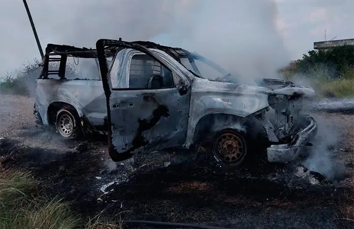 Camioneta de la CFE termina calcinada en Ébano