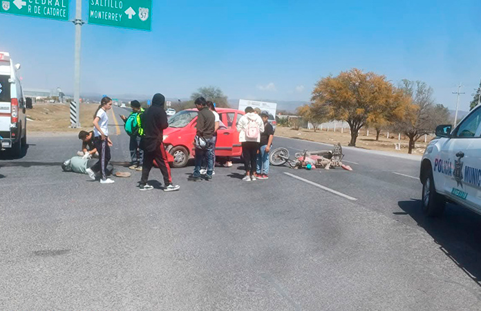 Choca motociclista contra un automóvil