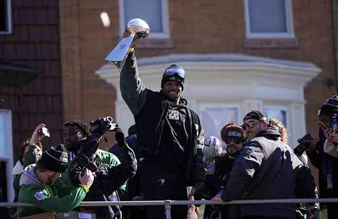 Miles de aficionados salieron a las calles para celebrar el título del Super Bowl [AP] FILADELFIA.- Filadelfia se tiñó de verde en pleno Día de San Valentín para celebrar a sus campeones del Super Bowl.Los fanáticos gritaron emocionadosel viernes mientras el quarterback Jalen Hurts, el Jugador Más Valioso del Super Bowl, y el propietario de los Eagles Jeffrey Lurie, se … [Leer más...] acerca de Eagles festejan su campeonato