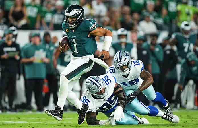 [AP] FILADELFIA.- Jalen Hurts corrió para dos touchdowns y los Eagles de Filadelfia, campeones del Super Bowl, se sobrepusieron a la pérdida de un jugador expulsado y a una interrupción por la lluvia para inaugurar la campaña de la NFL con un triunfo de 24-20 sobre los Cowboys de Dallas.Los Eagles tuvieron que frenar una amenaza de los Cowboys en el cierre del partido. … [Leer más...] acerca de Sufrido triunfo de los Eagles