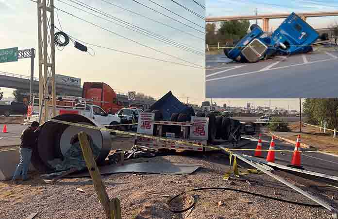 Redacción[San Luis Hoy] Al circular por el Libramiento Oriente, el conductor de un tráiler perdió la vida al sufrir aparatosa volcadura cuando tomó una curva para acceder a la carretera a México, al parecer el peso le ganó y quedó prensado en la cabina de la unidad.El accidente tuvo lugar antes de las cinco de la tarde de este martes, cuando el tráiler Kenworth color azul, … [Leer más...] acerca de Fallece trailero en volcadura del Libramiento