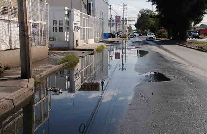 Reportan fuga de agua negra en Av. Industrias