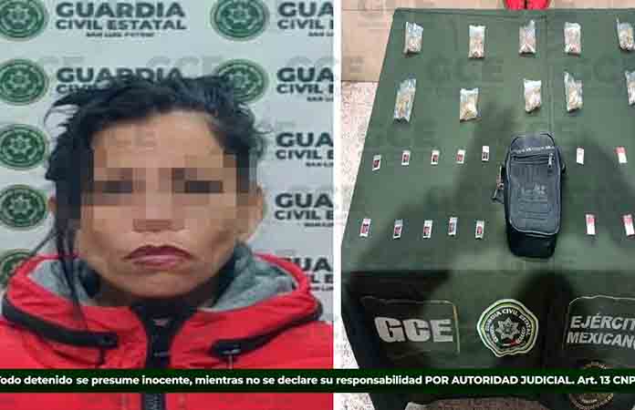 Redacción[San Luis Hoy] Una mujer, que cuenta con amplio historial delictivo y presunta integrante de un grupo criminal, fue capturada con diversas dosis de droga por agentes de la Guardia Civil Estatal, que la sorprendieron mientras realizaban patrullajes en la colonia Los Reyitos, en esta capital potosina.Los hechos se llevaron a cabo mediante los trabajos desplegados en … [Leer más...] acerca de Capturan a una mujer con vasto historial delictivo