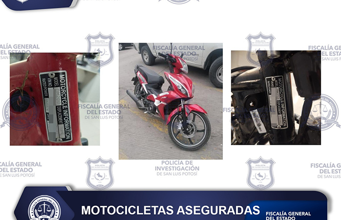 Redacción[San Luis Hoy] La Fiscalía General del Estado de San Luis Potosí (FGESLP), a través de la Policía de Investigación (PDI), recuperó tres motocicletas con reporte de robo en la ciudad capital y la Huasteca Potosina.La primera unidad encontrada es una motocicleta Italika, modelo 2023, color rojo con blanco, línea AT110, la cual había sido reportada como hurtada a … [Leer más...] acerca de Recuperan tres motos robadas