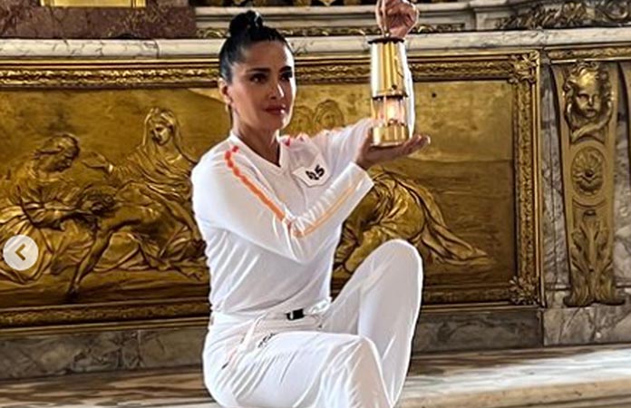 Salma Hayek porta antorcha olímpica
