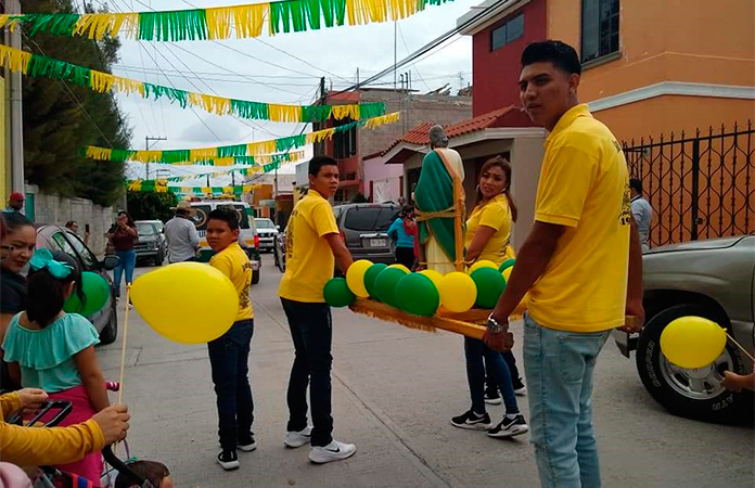 Jesús Vázquez[San Luis Hoy] Matehuala.- Después de que el pasado 20 de octubre bajaran la imagen de San Judas Tadeo del Templo de la colonia Dichosa nuevamente lo acaban de subir y regresar a su lugar, esto lo hicieron para llevar a cabo las fiestas patronales en su honor y que la gente tuviera más acercamiento para llevarle velas, y diferentes muestras de … [Leer más...] acerca de Suben imagen de San Judas al altar mayor