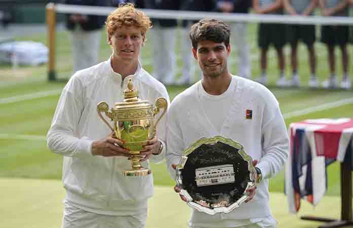 El italiano vence al bicampeón defensor de Wimbledon, Carlos Alcaraz [AP] LONDRES.- Jannik Sinner derrotó al bicampeón defensor Carlos Alcaraz 4-6, 6-4, 6-4, 6-4 el domingo para ganar su primer campeonato de Wimbledon y revertir el resultado de su épica final del Abierto de Francia de hace cinco semanas.El número 1 del mundo, Sinner, obtuvo su cuarto título de Grand Slam … [Leer más...] acerca de Sinner conquista Wimbledon