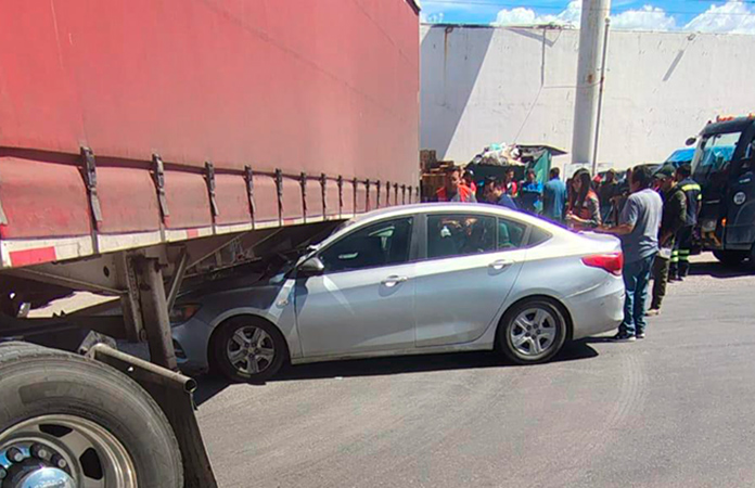 Tráiler sale de un bodega y le pega a un automóvil