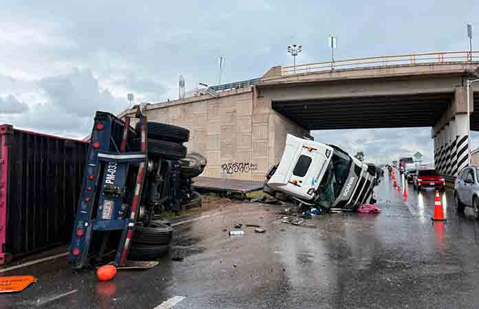 Cae tráiler de ramal elevado en L. Oriente
